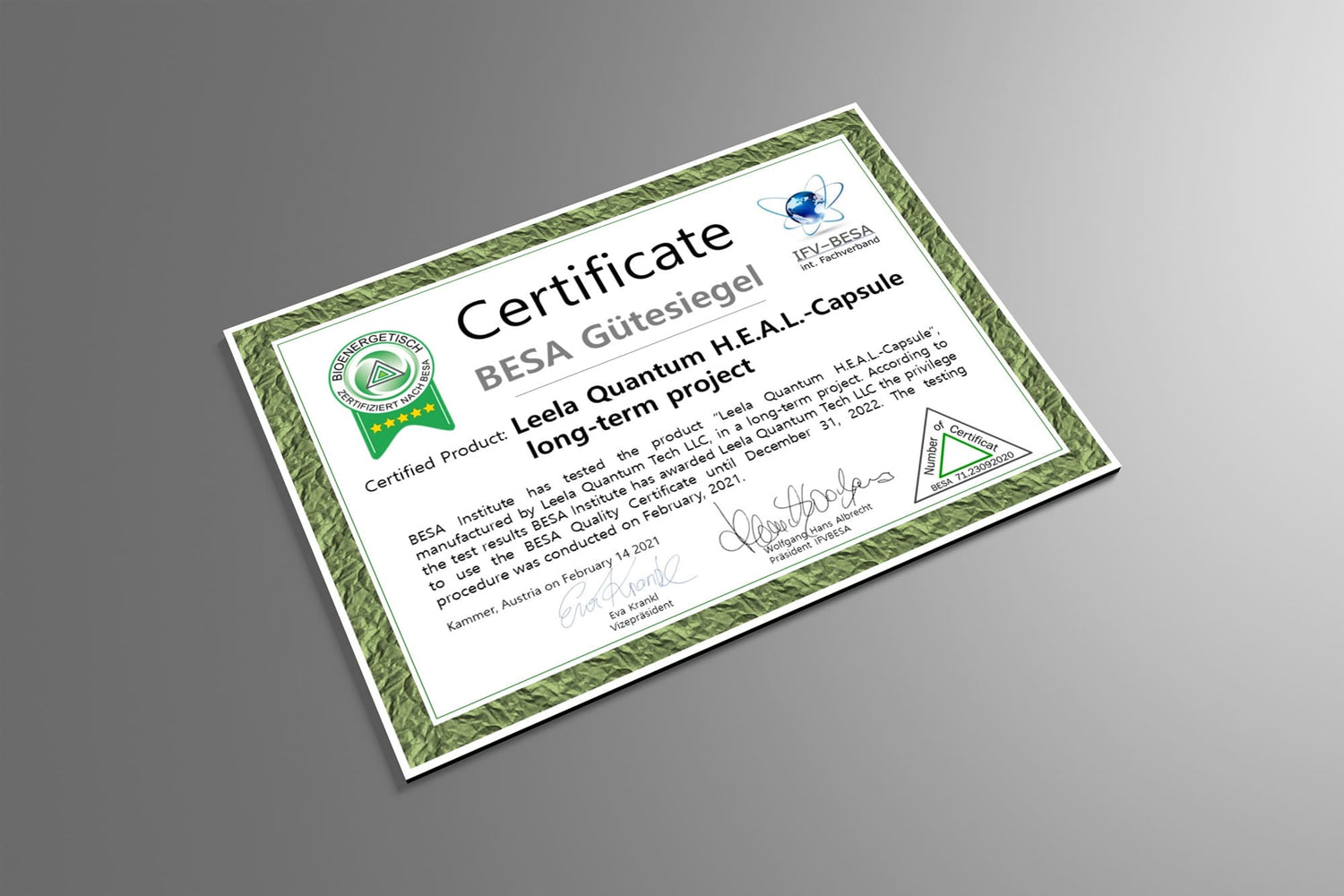 The BESA seal of approval stands for the highest standards in bioenergetic health regulation. The Austrian BESA Institute is the leading European research and testing institute on the subjects of biofeedback, bioenergetics and bioenergetic system analysis.